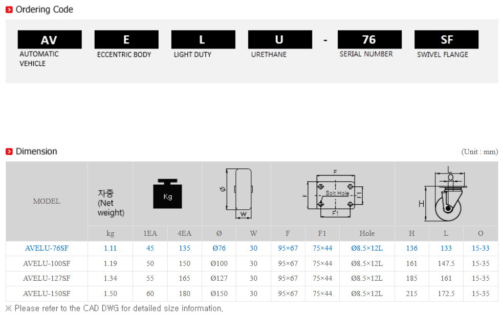 AVEL sử dụng ổ bi và có khả năng quay tuyệt vời khi thay đổi hướng.