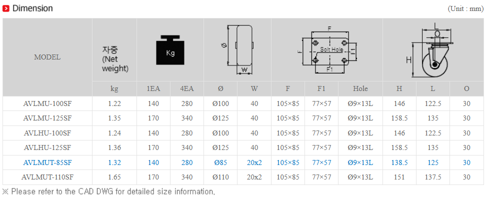 Bánh xe tự hành AVG mã AVLMUT-110SF
