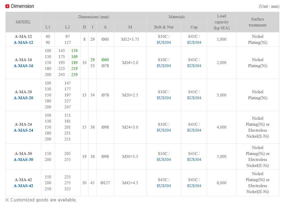 Kích thước ren: M12 ~ M42