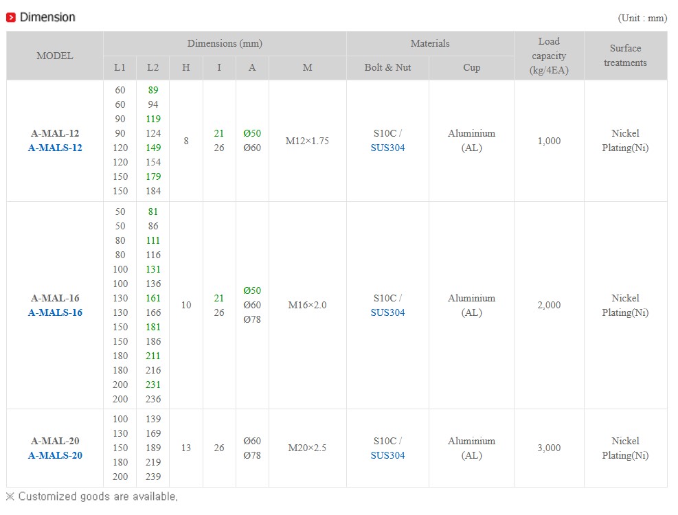 Dễ dàng điều chỉnh cân bằng ngay cả khi đã chịu tải nhờ có vòng bi bên trong