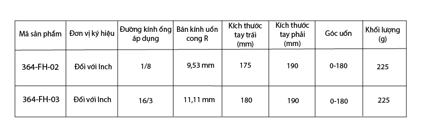 - Uốn ống thành mỏng bằng đồng, đồng thau, nhôm và thép không rỉ (1mm trở xuống, ống điều khiển đường kính ngoài) và sắt mềm