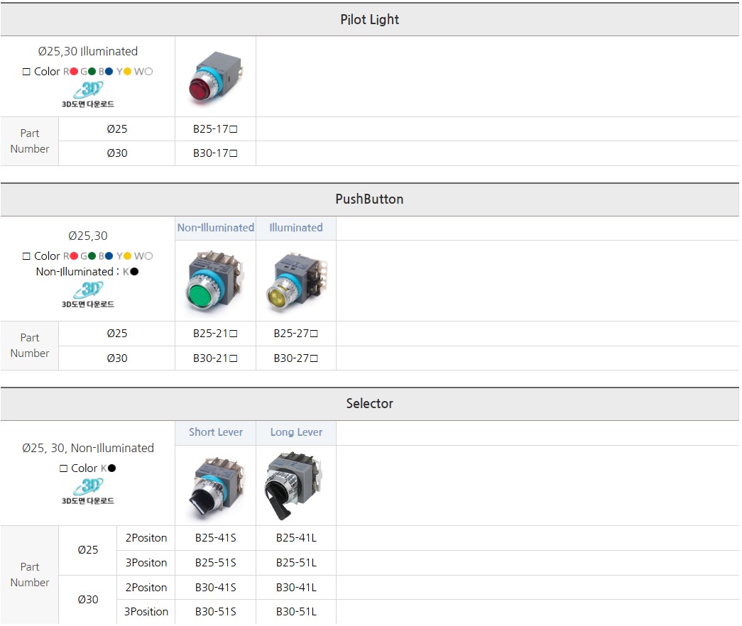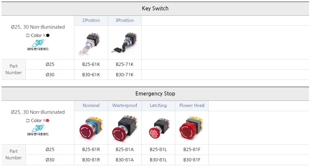 Nút nhấn KACON Ø25, Ø30  mm B series