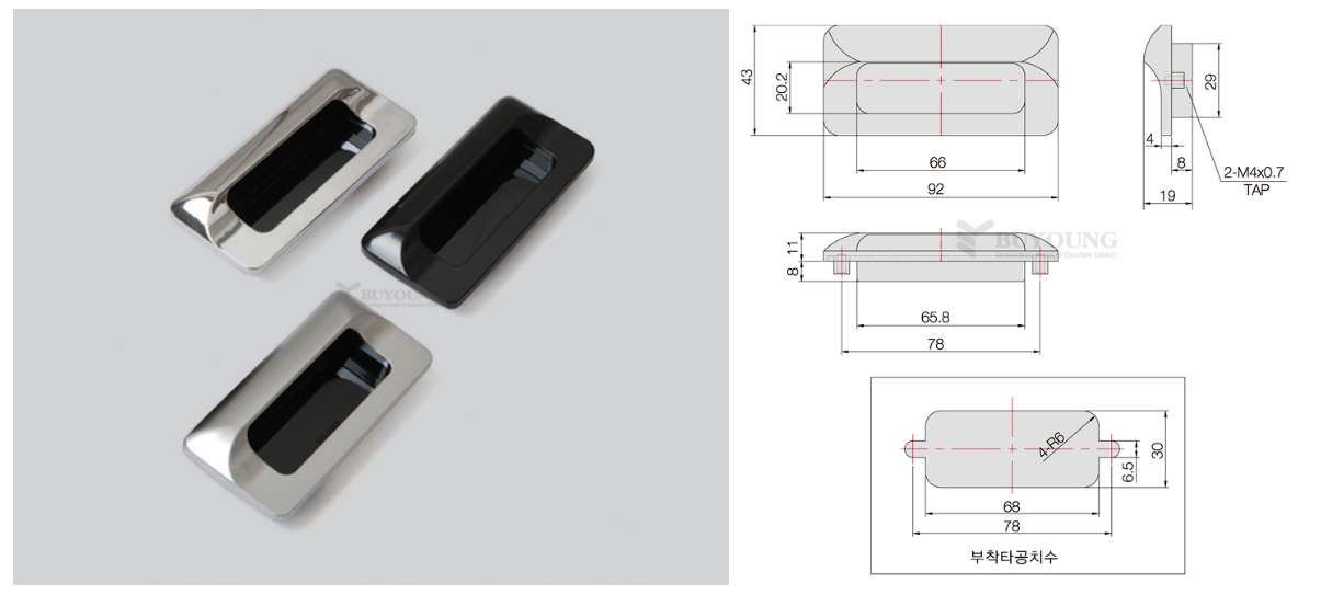 Tay nắm cửa chìm BY183-3 (CV, CR, BK)